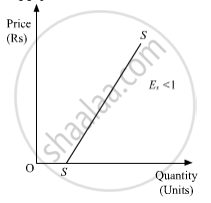 b. Less Elastic Supply (Es < 1)- If the supply curve originates from the horizontal intercept of quantity-axis, then irrespective of the angle of inclination of the supply curve, the elasticity of the supply curve will be less than one i.e. (Es < 1).