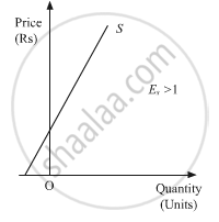 c. More Elastic Supply (Es > 1)- Unlike the less elastic supply curve, the relatively more elastic supply curve originates from the vertical intercept of price-axis. The value of elasticity of supply originating from the vertical intercept is greater than one, i.e. (Es > 1).