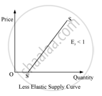 e. Relatively inelastic supply - When the supply of a good is less responsive to the changes in its price, the supply of the good is said to be relatively inelastic. In this case, the percentage change in the supply is less than the percentage change in the price. Here, Es < 1.
