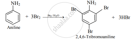 (I) Aniline reacts with bromine water at room temperature to give o-bromoaniline.