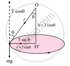 T sin θ = `"mv"^2/"r" = "mr"omega^2` ....(2) - Dividing equation (2) by (1),