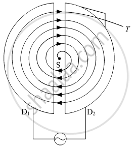 It consists of a hollow metal cylinder divided into two sections D1 and D2 called Dees, enclosed in an evacuated chamber. The Dees are kept separated and a source of ions is placed at the center in the gap between the Dees. They are placed between the pole pieces of a strong electromagnet. The magnetic field acts perpendicular to the plane of the Dees. The Dees are connected to a high-frequency oscillator.