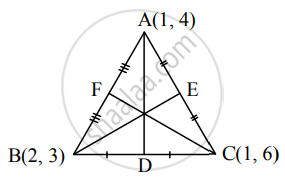 F ≡ `((1 + 2)/2, (4 + 3)/2) = (3/2, 7/2)`