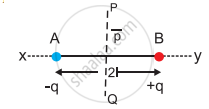Two particles A and B, of opposite charges 2.0 × 10−6 C and −2.0 × 10−6 C, are placed at a separation of 1.0 cm. Calculate the electric field at a point on the perpendicular bisector of the dipole and 1.0 m away from the centre.