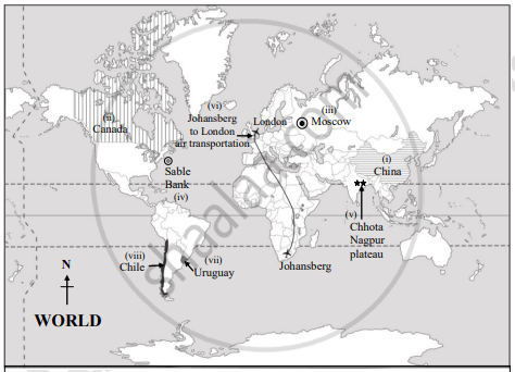 Show the following in the world map. Index is necessary