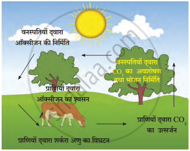 - जमीन की वनस्पतियाँ और प्राणियाँ हवा की ऑक्सीजन को और जलचर वनस्पतियाँ और प्राणियाँ पानी में घुले हुए ऑक्सीजन को श्वसन के लिए उपयोग करती हैं।