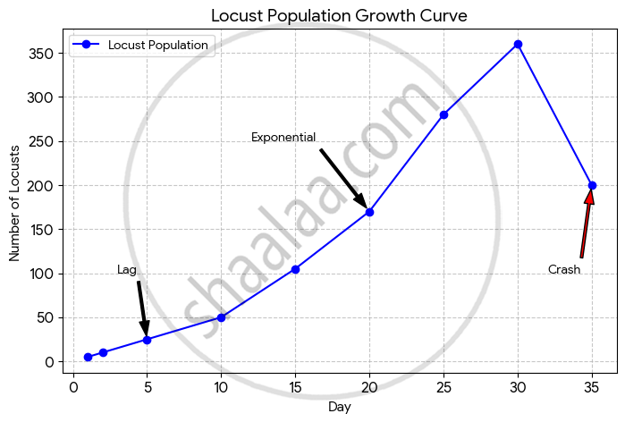 As a part of his research, Arun conducted a study on the number of locusts in a forest. He compiled his findings in the form of the following data.