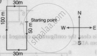 Ashok started walking towards the south. After walking 50 meters he took a right turn and walked 30 meters. He then took a right turn and walked 100 meters. He again took a right turn and walked 30 meters and stopped. How far and in which direction was he from the starting point?
