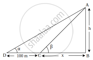 At a point on level ground, the angle of elevation of a vertical tower is, found to be α such that tan α = `1/3`. After walking 100 m towards the tower, the angle of elevation β becomes such that tan β = `3/4`. Find the height of the tower.