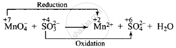 \[\ce{MnO^{-}4 + SO^{2-}3 + H^{+} -> Mn^{2+} + SO^{2-}4 + H2O}\]