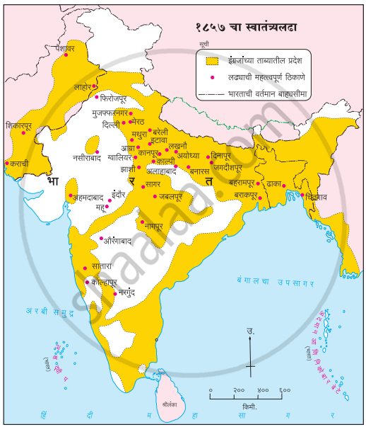भारताच्या नकाशा आराखड्यात १८५७ च्या स्वातंत्र्यलढ्याची ठिकाणे दर्शवा. - History and Civics [इतिहास व नागरिकशास्त्र]