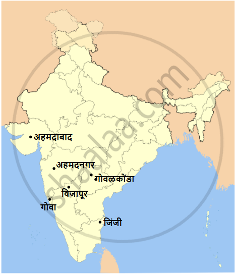 भारताच्या नकाशात गोवा, विजापूर, गोवळकोंडा, जिंजी, अहमदाबाद, अहमदनगर ही ठिकाणे दाखवा. - History and Civics [इतिहास व नागरिकशास्त्र]