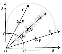 - Draw an arc with centre O and any radius, which cuts the ray OB and OA at U and Y.
