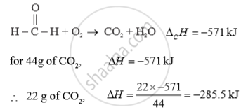 The standard enthalpy of combustion of formaldehyde Δ 0H0 = -571 kJ How much heat will be evolved in the formation of 22 g of CO2 ?