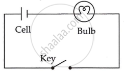 दिए गए सर्किट में, बल्ब का एक टर्मिनल सेल के एक टर्मिनल से जुड़ा होता है जबकि उनके अन्य टर्मिनल एक सेफ्टी पिन से जुड़े होते हैं। हालांकि, सेफ्टी पिन किसी एक ड्रॉइंग पिन से नहीं जुड़ा है। इस प्रकार, सर्किट पूरा नहीं हुआ है। इसलिए, सेफ्टी पिन 'ऑफ' स्थिति में एक स्विच का प्रतिनिधित्व करता है। दिए गए चित्र का परिपथ आरेख निम्न आकृति में दिखाया गया है।