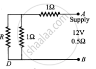 अतः बिन्दुओं C व D के बीच प्रतिरोध वही होगा जो बिन्दुओं A व B के बीच है; अतः समान्तरक्रम में जुड़े प्रतिरोध R तथा 1 Ω का तुल्य प्रतिरोध,