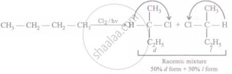 \[\ce{C\overset{\bullet}{l}}\] may attack on either side and give a racemic mixture of 2-chlorbutane which contain 50% d - form and 50% `l` - form.