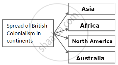 Complete the concept map: Spread of British Colonialism in continents - History