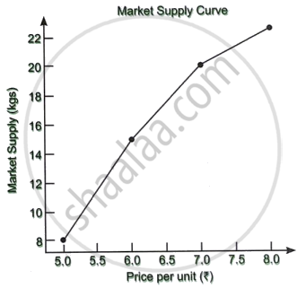 | Price per unit (₹) | Quantity supplied (kgs) by | Market Supply (kgs) | |