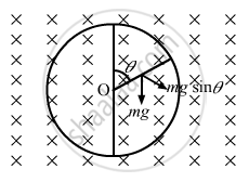 Consider the situation shown in the figure. Suppose the circular loop lies in a vertical plane. The rod has a mass m. The rod and the loop have negligible resistances but the wire connecting O and C has a resistance R. The rod is made to rotate with a uniform angular velocity ω in the clockwise direction by applying a force at the midpoint of OA in a direction perpendicular to it. Find the magnitude of this force when the rod makes an angle θ with the vertical.