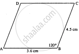 AB = 3.6 cm, BC = 4.5 cm and ∠ABC = 120°.