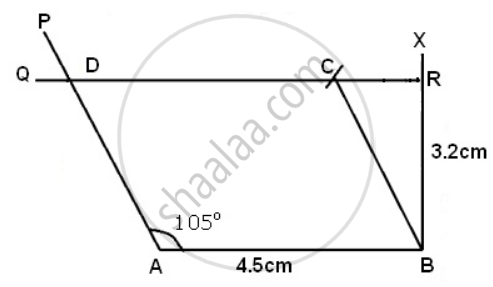Construct a parallelogram ABCD in which AB = 4.5cm, ∠A = 105° and the distance between AB and CD is 3.2cm.