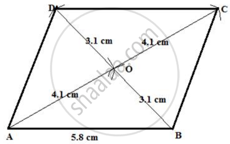 AB = 5.8 cm, diagonal AC = 8.2 cm and diagonal BD = 6.2 cm.