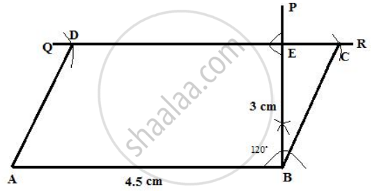 AB = 4.5 cm, ∠B = 120° and the distance between AB and DC = 3.0 cm.