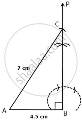 Construct a right-angled triangle in which: Side AB = 4.5 cm and hypotenuse AC = 7 cm