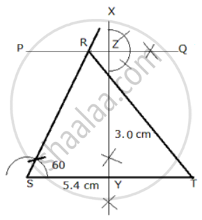 Construct a ΔRST with side ST = 5.4 cm, RST = 60° and the perpendicular from R on ST = 3.0 cm.