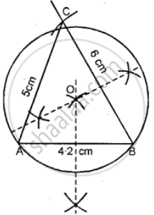 Construct a triangle ABC with AB = 4.2 cm, BC = 6 cm and AC = 5cm. Construct the circumcircle of the triangle drawn.