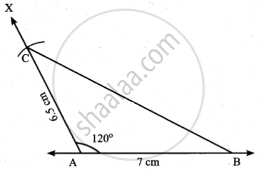 Step 2: At A, drawn a ray AX making an angle of 120° with AB.