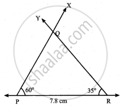 ∠P = 60°, ∠R = 35° and PR = 7.8 cm