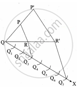 Construct a triangle similar to a given triangle PQR with its sides equal to `7/3` of the corresponding sides of the triangle PQR (scale factor `7/3 > 1`)