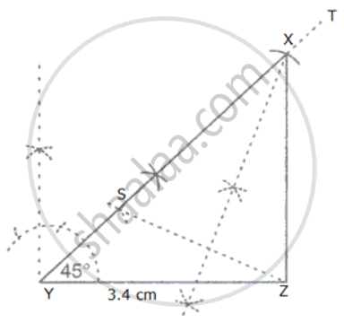 XY - XZ = 1.5 cm, YZ = 3.4 cm and ∠X = 45°