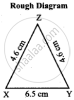 An isosceles triangle with equal sides 4.6 cm and third side 6.5 cm