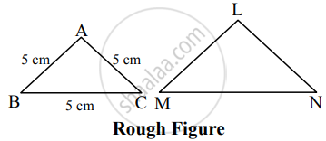 Construct an equilateral ∆ABC with side 5 cm. ∆ABC ~ ∆LMN, ratio the corresponding sides of triangle is 6 : 7, then construct ΔLMN and ΔABC