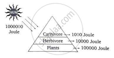 Construct an ideal pyramid of energy when 1000,000 joules of sunlight is available. Label all its trophic levels.
