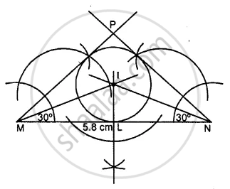 Construct an isosceles ∆ MNP such that base MN = 5.8 cm, base angle MNP = 30°. Construct an incircle to this triangle and measure its radius.