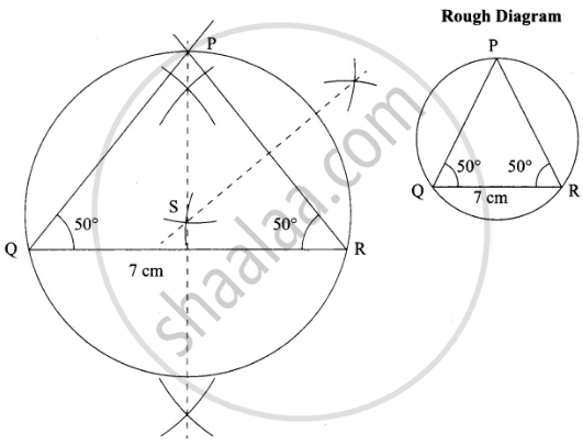 Construct an isosceles triangle PQR where PQ = PR and ∠Q = 50°, QR = 7 cm. Also draw its circumcircle.