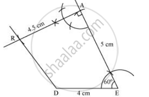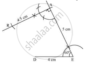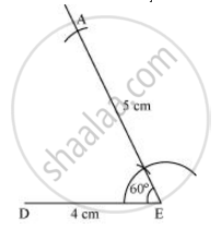 2) Draw a line segment DE of 4 cm and an angle of 60º at point E. As vertex A is 5 cm away from vertex E, cut a line segment EA of 5 cm from this ray.