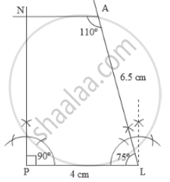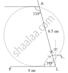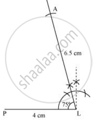 3) Draw a line segment PL of 4 cm and draw an angle of 75º at point L. As vertex A is 6.5 cm away from vertex L, cut a line segment LA of 6.5 cm from this ray