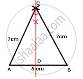 Construct an isosceles triangle whose equal sides are 7 cm each and the base side is 5 cm. Draw all its lines of symmetry.