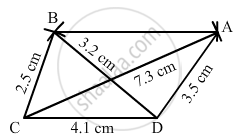 Construct a quadrilateral ABCD given AD = 3.5 cm, BC = 2.5 cm, CD = 4.1 cm, AC = 7.3 cm and BD = 3.2 cm.