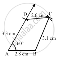 Construct a quadrilateral ABCD in which AB = 2.8 cm, BC = 3.1 cm, CD = 2.6 cm, and DA = 3.3 cm and ∠A = 60°.
