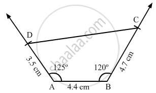Construct a quadrilateral ABCD, in which AD = 3.5 cm, AB = 4.4 cm, BC = 4.7 cm, ∠A = 125° and ∠B= 120°.
