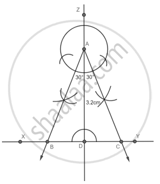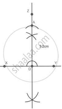 Step 3: With center D and radius 3.2 cm cut an arc on DZ at A.