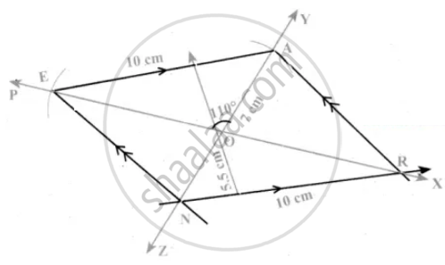 EARN, ER = 10 cm, AN = 7 cm and ∠EOA = 110° where `bar("ER")` and `bar("AN")` intersect at O