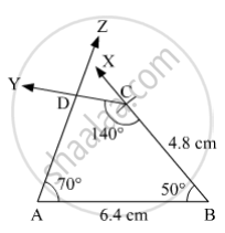 In ☐ ABCD l(AB) = 6.4 cm, l(BC) = 4.8 cm, m∠A = 70°, m∠B = 50°, m∠C = 140°.