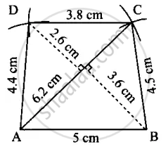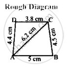 ABCD, AB = 5 cm, BC = 4.5 cm, CD = 3.8 cm, DA = 4.4 cm and AC = 6.2 cm